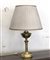 Lampada da tavolo in ottone con fusto tornito e scanalato, paralume in stoffa...