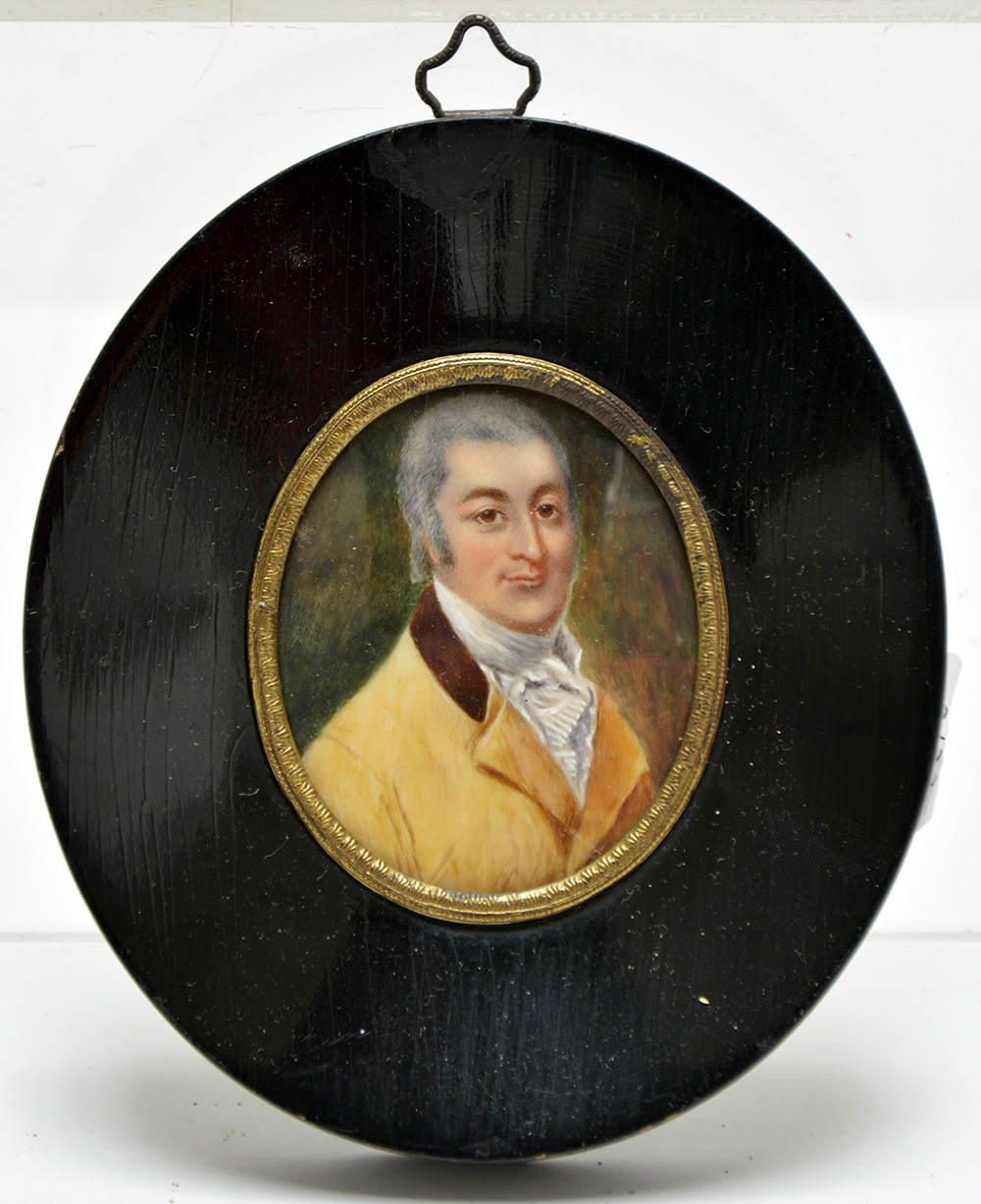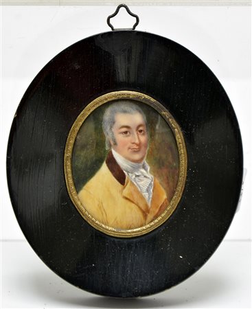Scuola del secolo XX "Gentiluomo" miniatura ovale (cm 6x5) In cornice (difetti)