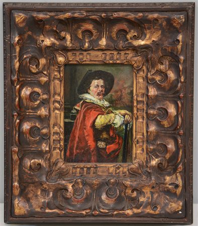 "Moschettiere" olio su tavoletta (cm 18x12) Firmato in basso a sinistra. In cornice (difetti)