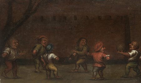 Scuola di Faustino Bocchi "Nani" olio su tela (cm 35x58) (difetti) In cornice