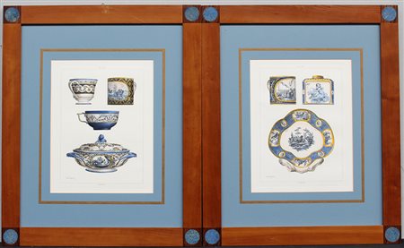 Coppia di stampe francesi (cm 50x40) raffiguranti decori di ceramiche, in...