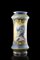 Albarello in maiolica decorato in policromia entro riserve a guerriero e...