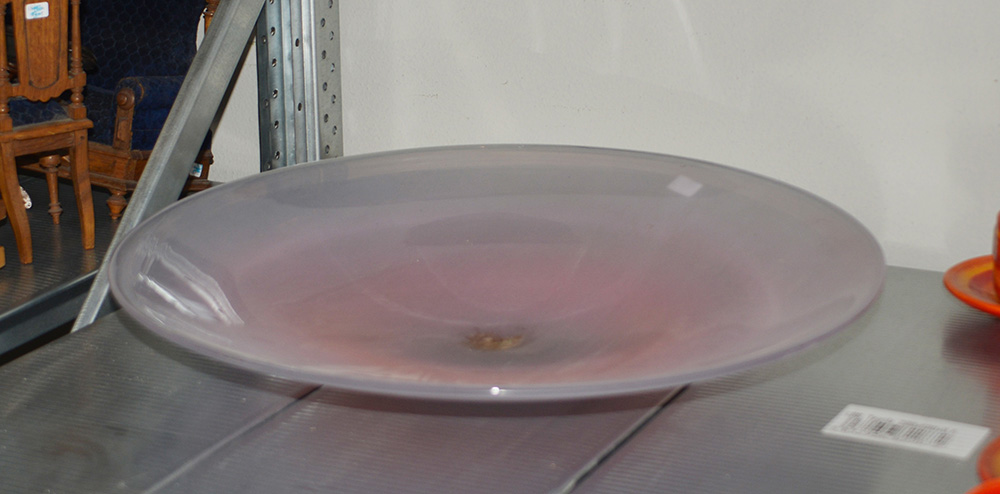 Centrotavola in vetro incamiciato opalescente e rosa. Secolo XX. Firmato a punta sotto la base. (d cm 46)