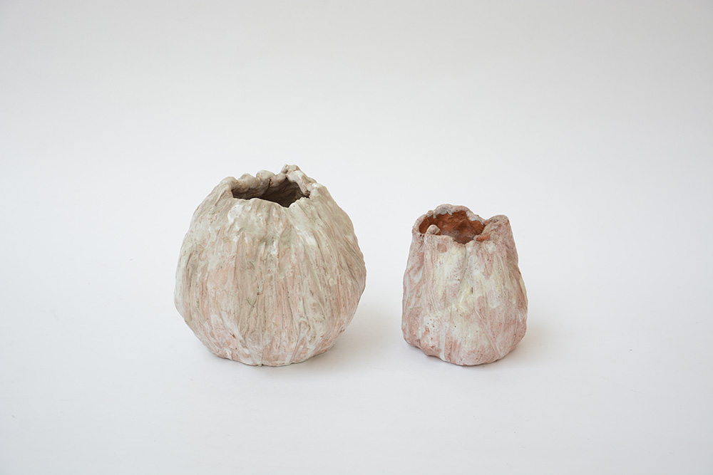 Matilde Magnaghi. Due vasi a "cartoccio" in terracotta smaltata