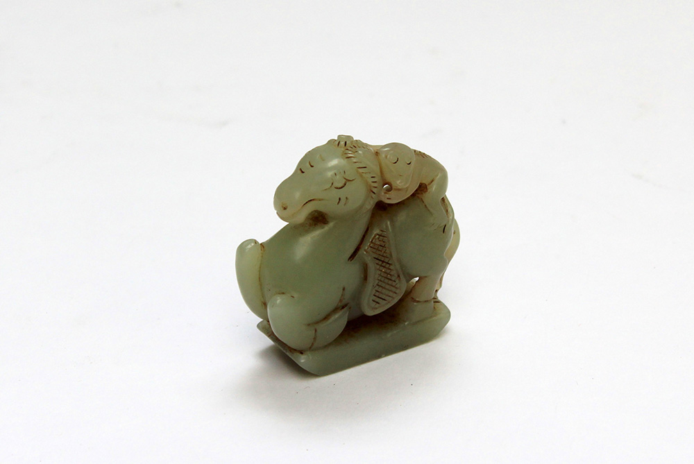 Sculturina in giada raffigurante una scimmia a cavallo (h. cm 5,5x5)