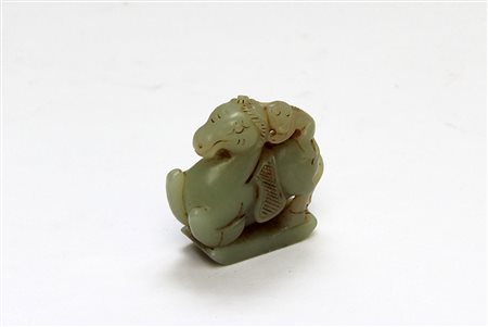 Sculturina in giada raffigurante una scimmia a cavallo (h. cm 5,5x5)Cina,...
