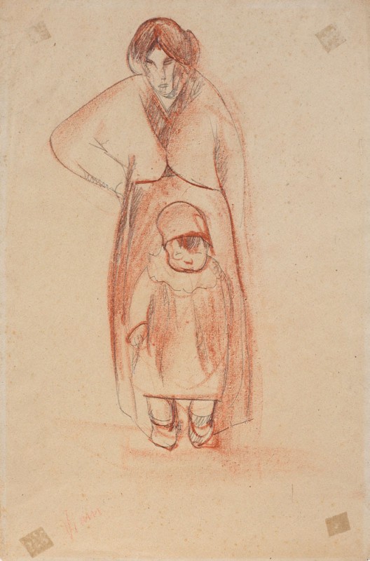 Lorenzo Viani Viareggio (Lu) 1882 - Ostia (Roma) 1936 Madre con bambino, 1929-1930 ca. Sanguigna e matita su carta, cm. 38,2x25,1 Firma in basso a sinistra: Viani. Certificato di Enrico Dei, Viareggio, 3-10-2012.
