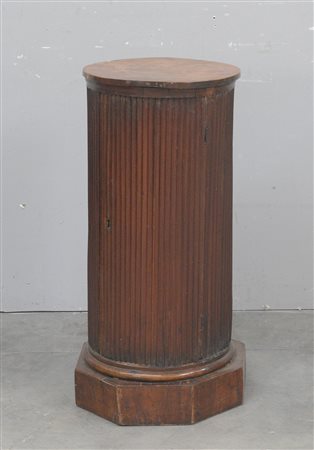 Comodino a colonna ad un'anta con corpo decorato a scanalature, secolo XIX (h cm 80 e d cm 40)