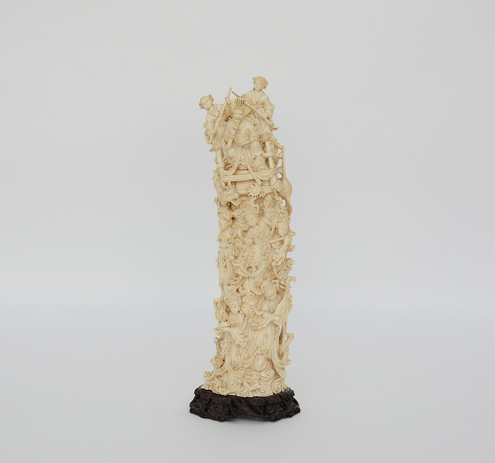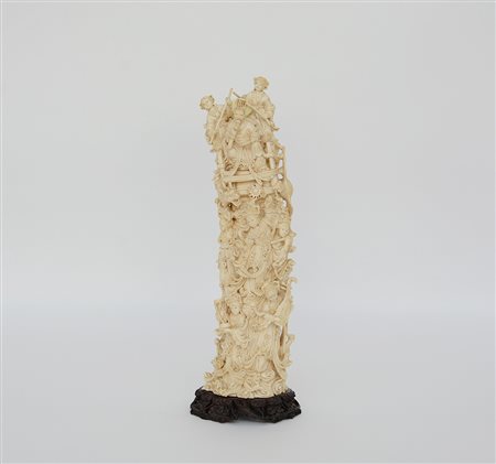 Gruppo in avorio con figure e creature fantastiche base in legno (h. 43 cm.)(difetti)