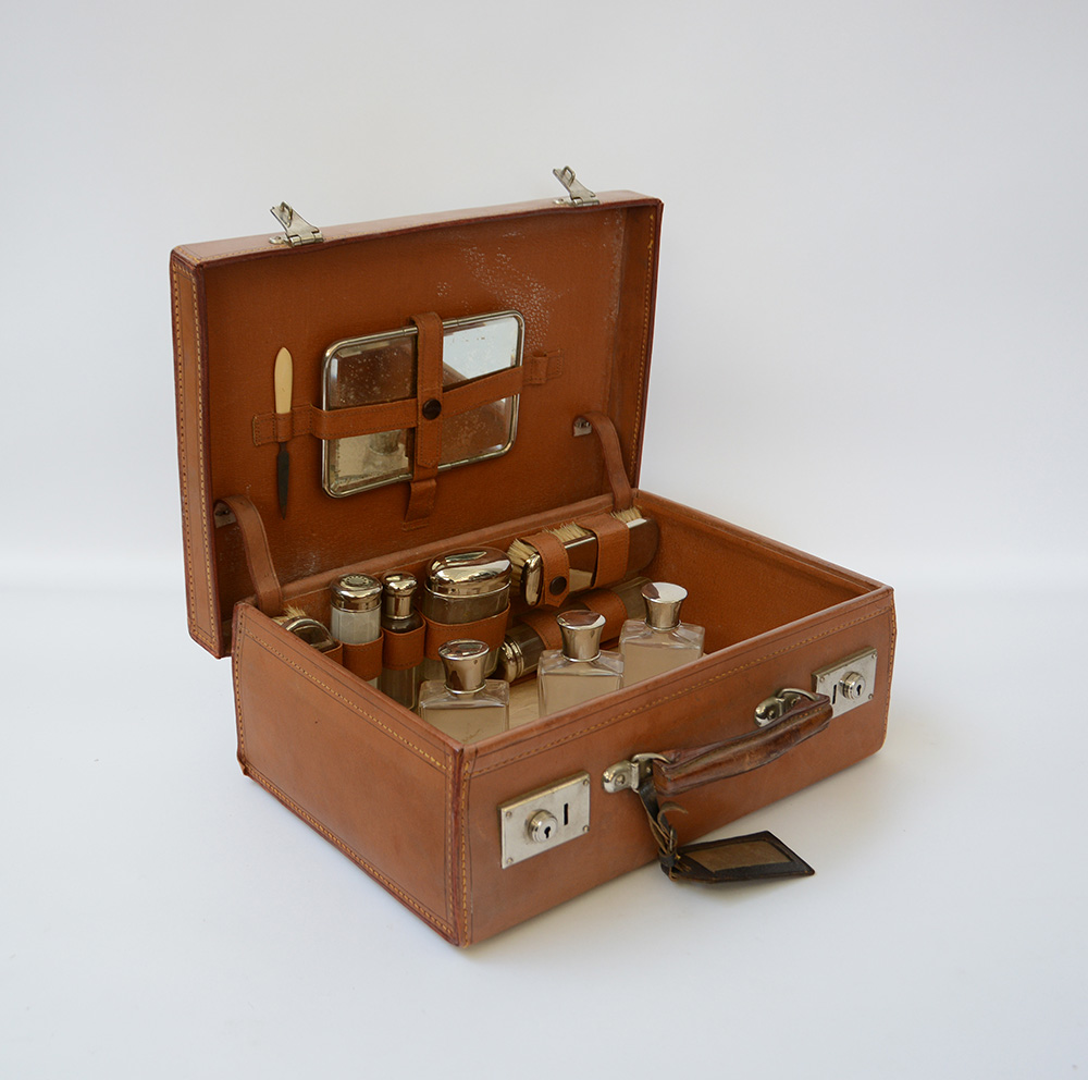 Valigetta in pelle contenente accessori per la toilette maschile (difetti)