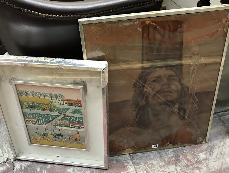 Lotto composto da un dipinto raffigurante volto di Cristo e un dipinto naif, in cornici (gravi difetti)