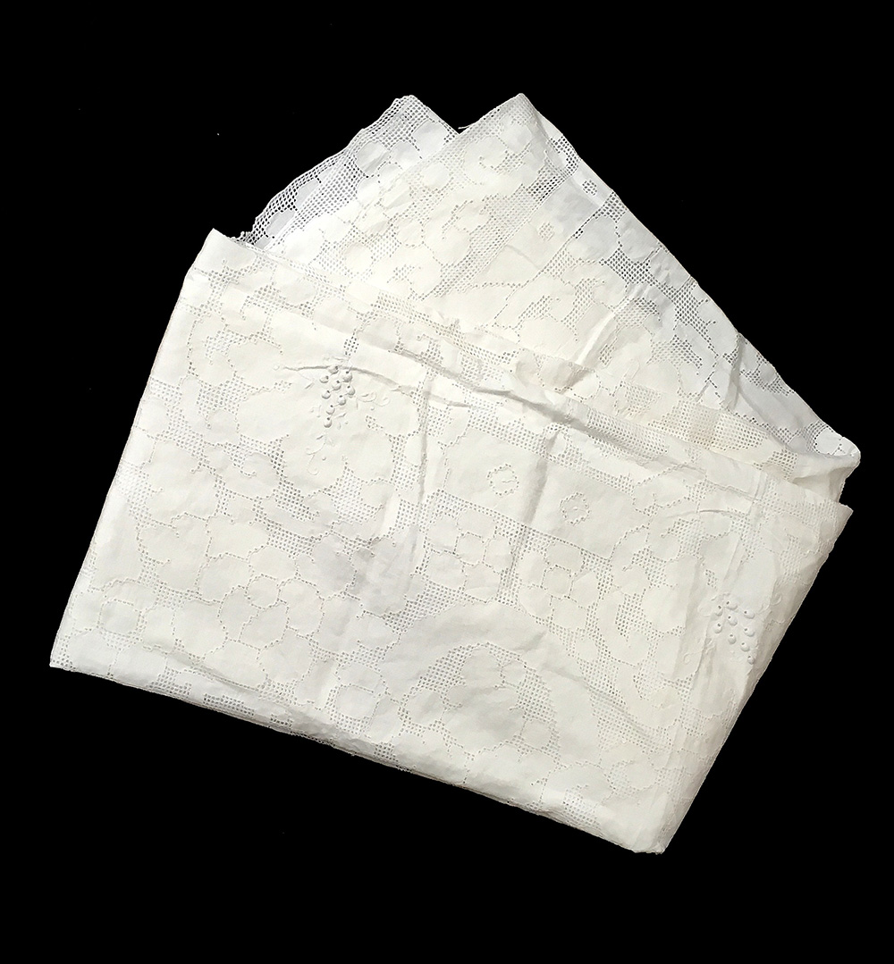 Copriletto in lino e cotone decorato con tecnica "sfilato e piccoli ricami...