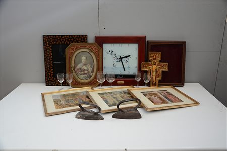 Cartone contenente diversi oggetti di materiali e epoche diverse (difetti)