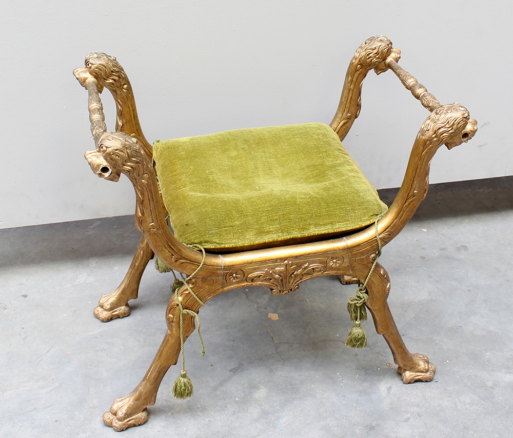 Panchetto in legno dorato e intagliato ad animali fantastici e motivi vegetali (difetti)