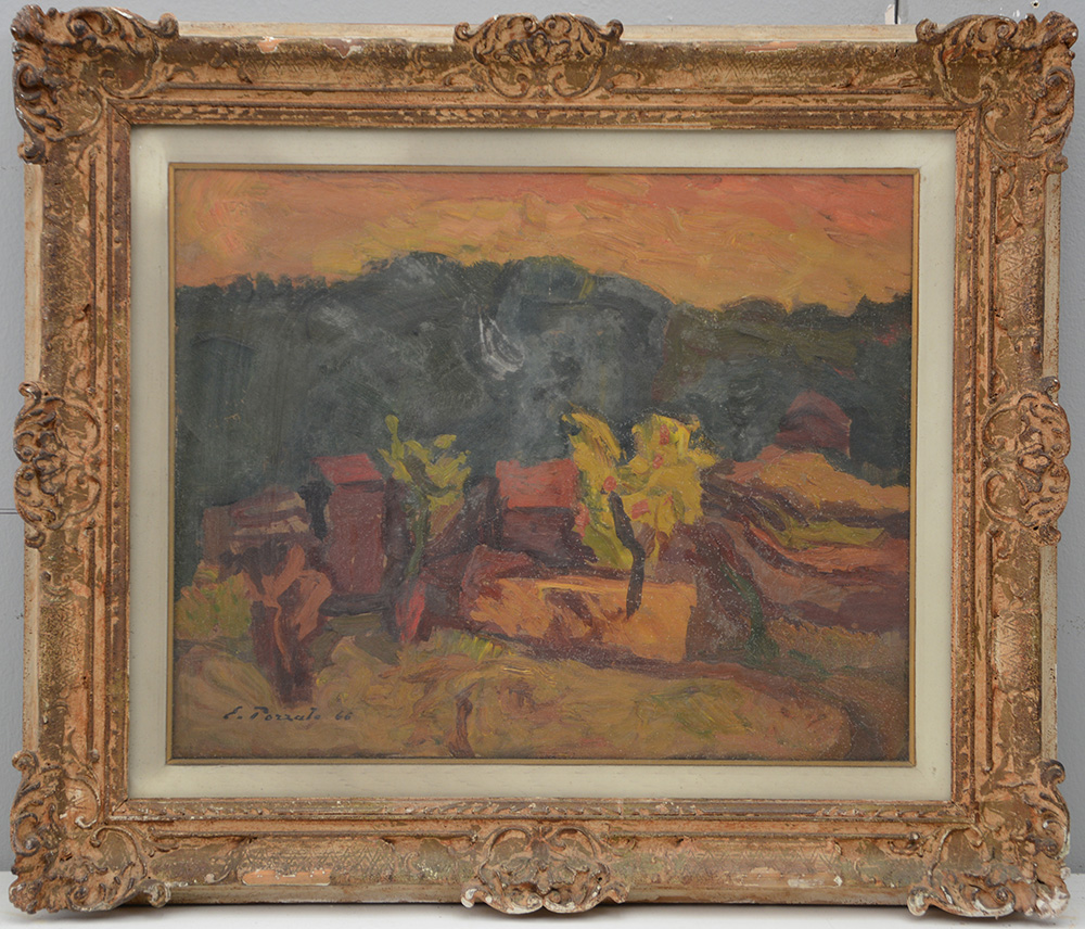 "Calura estiva" olio su tela (cm 40x50) firmato e datato '66 in basso a sinistra. Iscritto e titolato al retro, in cornice