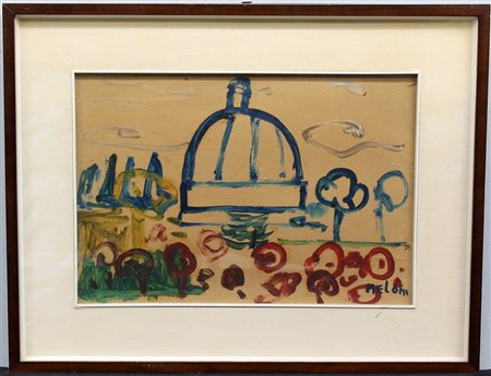Meloni "Paesaggio con cupola" tecnica mista su tela (cm 35x50) Inscritto al...
