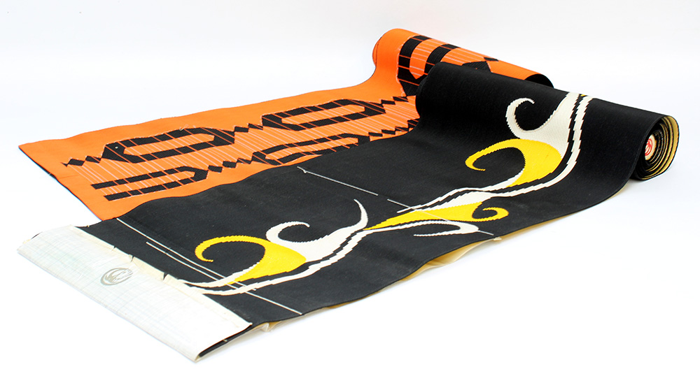 Due rotoli di stoffa operata a macchina con motivi geometrici