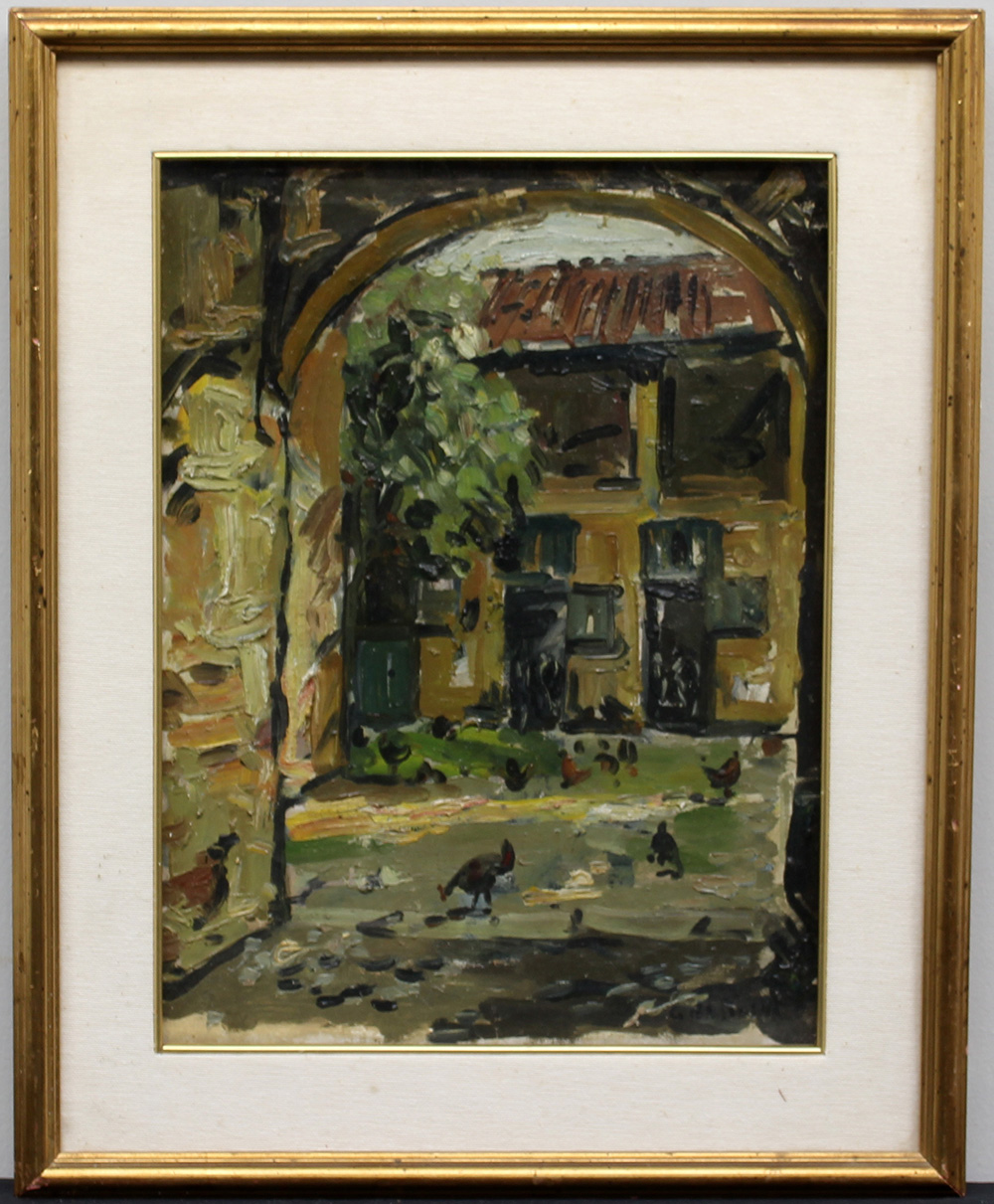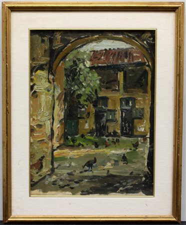 "Scorcio di paese" olio su tela (cm 40x30) Firmato in basso a destra. In cornice (difetti e mancanze)