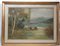 "Paesaggio lacustre con contadine" olio su tela (cm 70x100) firmato in basso a destra, in cornice