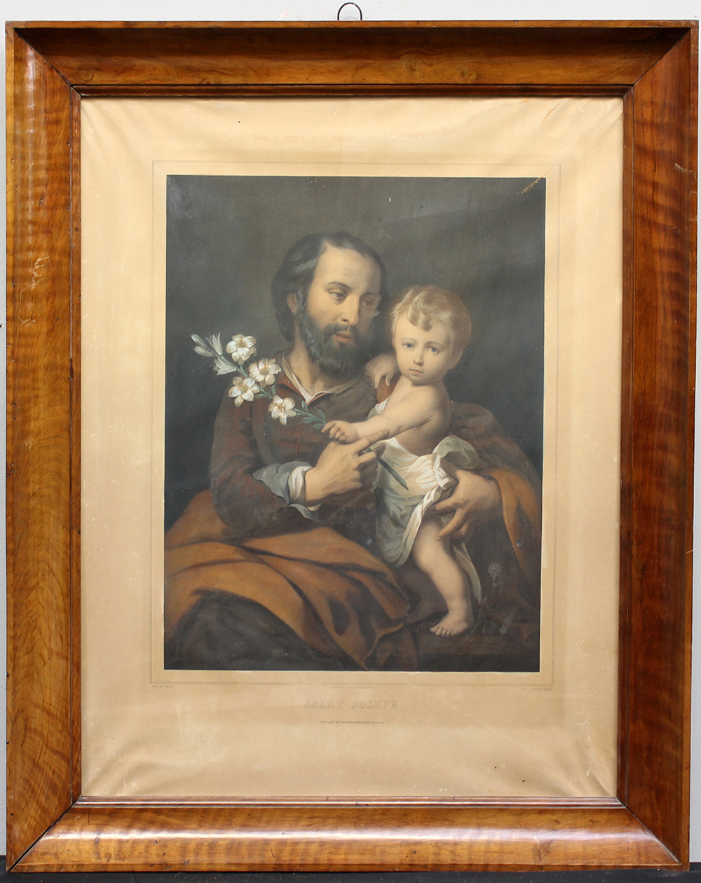 Lotto composto da due litografie a soggetto sacro di misure diverse. In cornici (difetti)