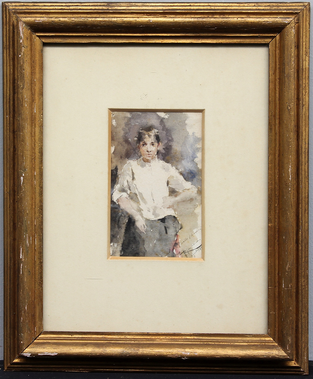 Roberto Fontana (Milano 1844 - Milano 1907)"Ritratto di fanciullo" acquarello...