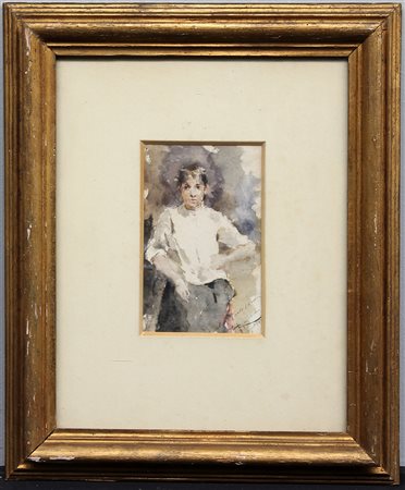 "Ritratto di fanciullo" acquarello (cm 15x9) firmato in basso a destra, in cornice