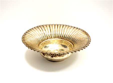 Centrotavola in argento con tesa costolata e bordo inciso, (gr 930) (d cm 34)...