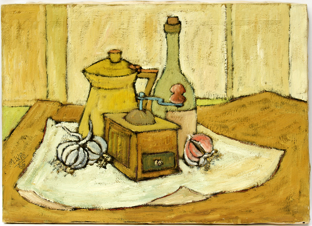 "Natura morta" 1965, olio su tela (cm 50x70) firmato e datato in basso a sinistra (difetti)