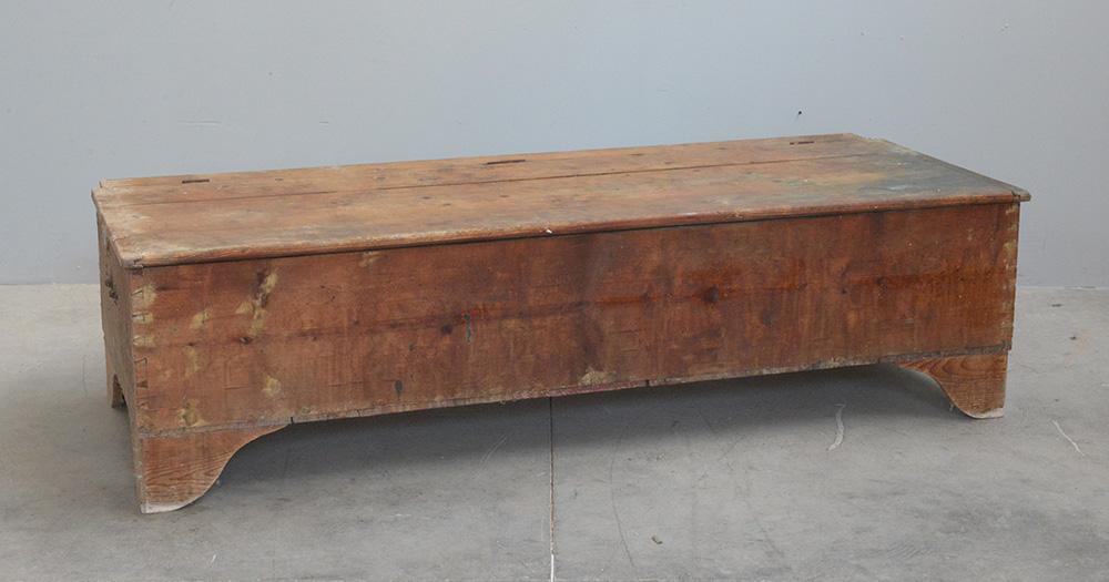 Cassapanca in legno dolce con maniglie in ferro (cm 180x50x76)