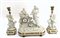 Trittico da camino in biscuit composto da una pendola con quadrante smaltato...