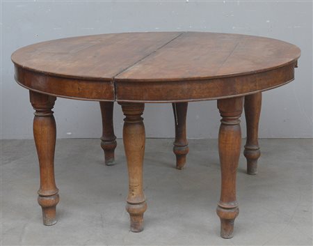 Tavolo allungabile in noce a gambe tornite, secolo XIX (cm 153x81) (mancante...