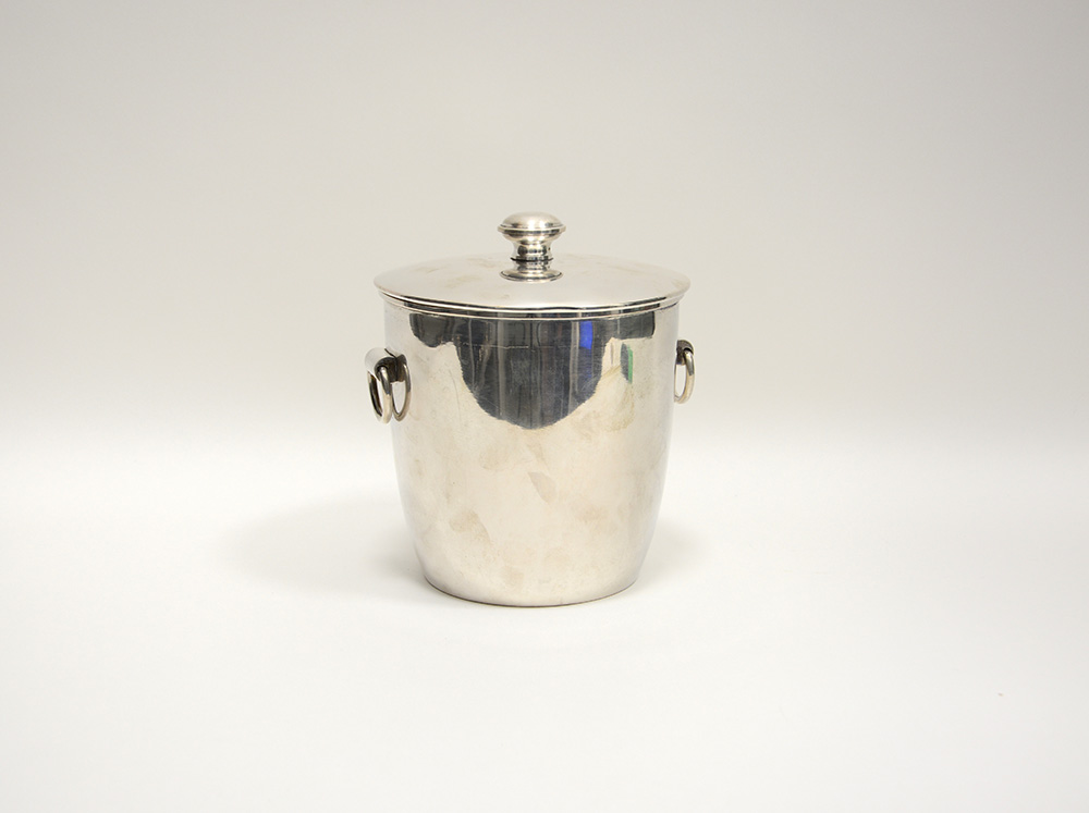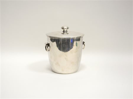 Secchiello portaghiaccio in argento a corpo liscio con presa tornita. Argentiere Miracoli, Milano (g lordi 1450)