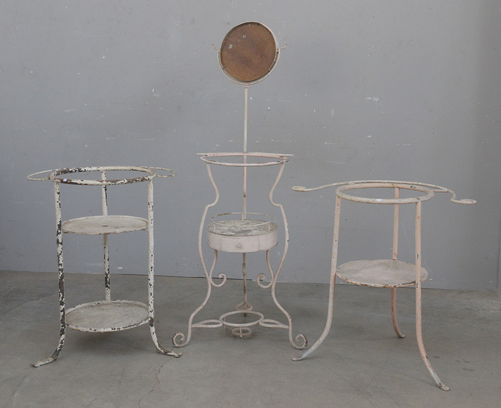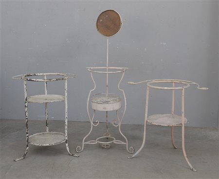Lotto composto da tre strutture per toilette in ferro laccato bianco (difetti)