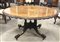 Tavolo ovale in legno intagliato, sostegno a quattro colonne e gambe mosse...