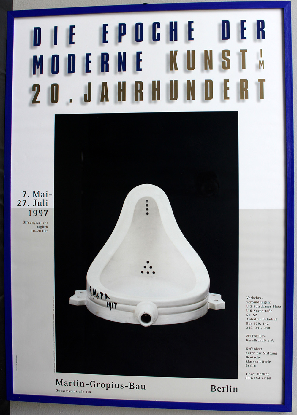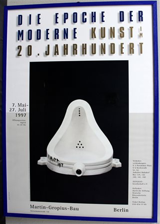 "Die Epoche der Moderne Kunst im 20. Jahrhundert" manifesto della mostra presso la Galleria Martin-Gropius-Bau di Berlino, Maggio 1997, raffigurante l'opera "Fountain" di Marcel Duchamp, cm 84x59. In cornice