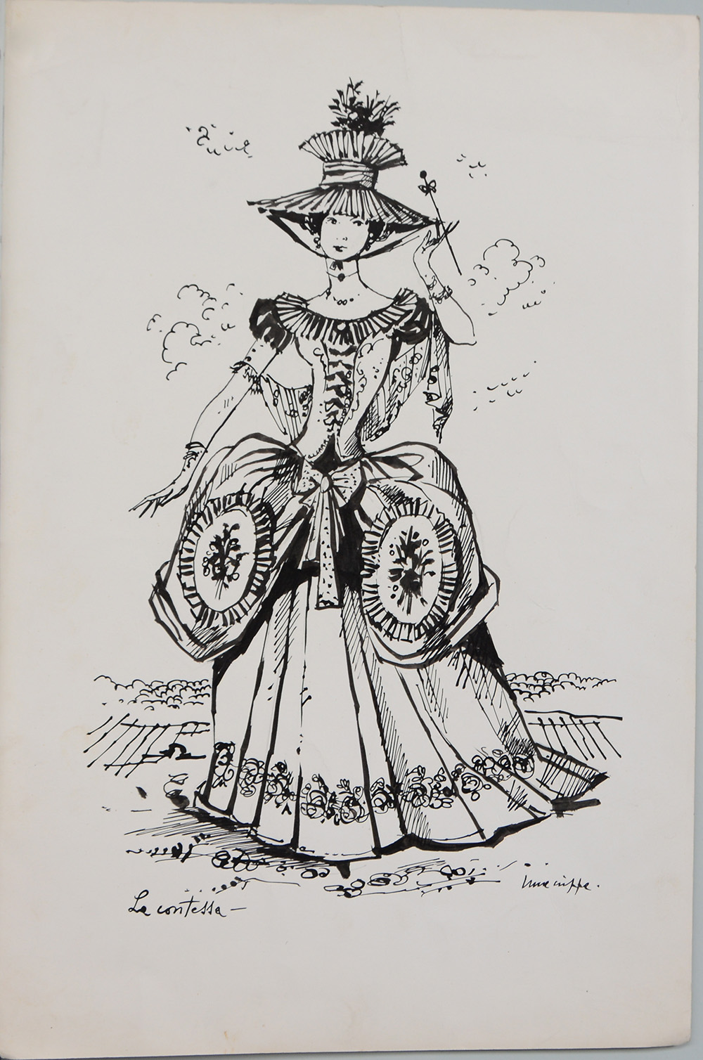 Luca Crippa (Seregno 1922 - 2002)"La Contessa" tecnica mista su cartacm...