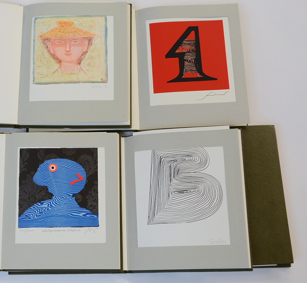 Lotto composto da n. 5 volumi "I numeri di Bolaffiarte" con grafiche di diversi autori tra cui Baj, Moore, Vedova. Bolaffi e Mondadori, Edizioni per il collezionismo d’arte.