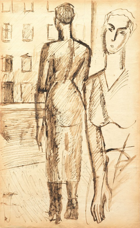 Mario Sironi Sassari 1885 - Milano 1961 Modella, (1921) China su carta applicata su tela, cm. 34x20,8 Al verso, su una faesite di supporto: timbro ed etichetta con n. 29 Galleria d'Arte Cavour, Milano: timbro Galleria d'Arte Cortina, Milano: ritaglio di giornale con riproduzione dell'opera e indicazione di esposizione presso la Galleria d'Arte Cavour di Milano. Storia: Galleria d'Arte Cavour, Milano; Collezione privata Bibliografia: Gino Traversi, Mario Sironi. Disegni, illustrazioni scenografie e opera grafica, Casa Editrice Ceschina, Milano, 1968, n. 43.