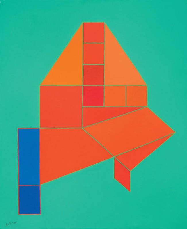 Achille Perilli Roma 1927 Ci siamo, 2004 Tecnica mista su tela, cm. 81x65 Firma e data in basso a sinistra: Perilli 2004; firma, data e titolo al verso sulla tela: Achille Perilli / 2004 / Ci siamo. Foto autenticata dall'artista, Orvieto, 23/11/05, n. 100 dell'anno 2004.