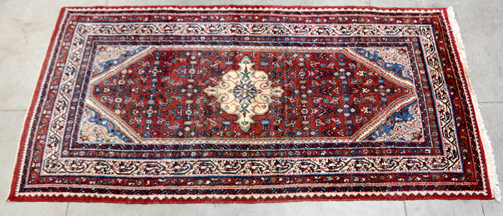 Tappeto Hamadan, Persia, secolo XX.Disegno a medaglione bianco su fondo...