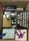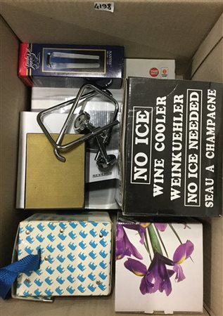 Cartone contenente alcuni oggetti per la cucina e due vasi in cristallo (lievi difetti)