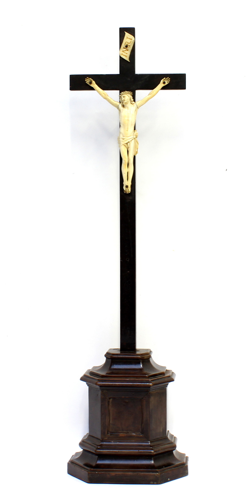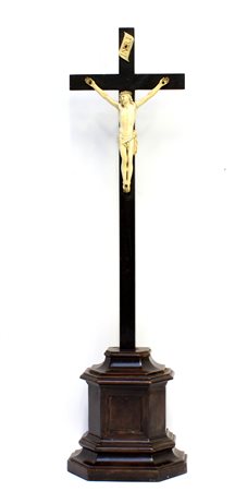 Arte del sec. XIX "Cristo cocifisso" scultura in avorio montato su croce in legno con base sagomata