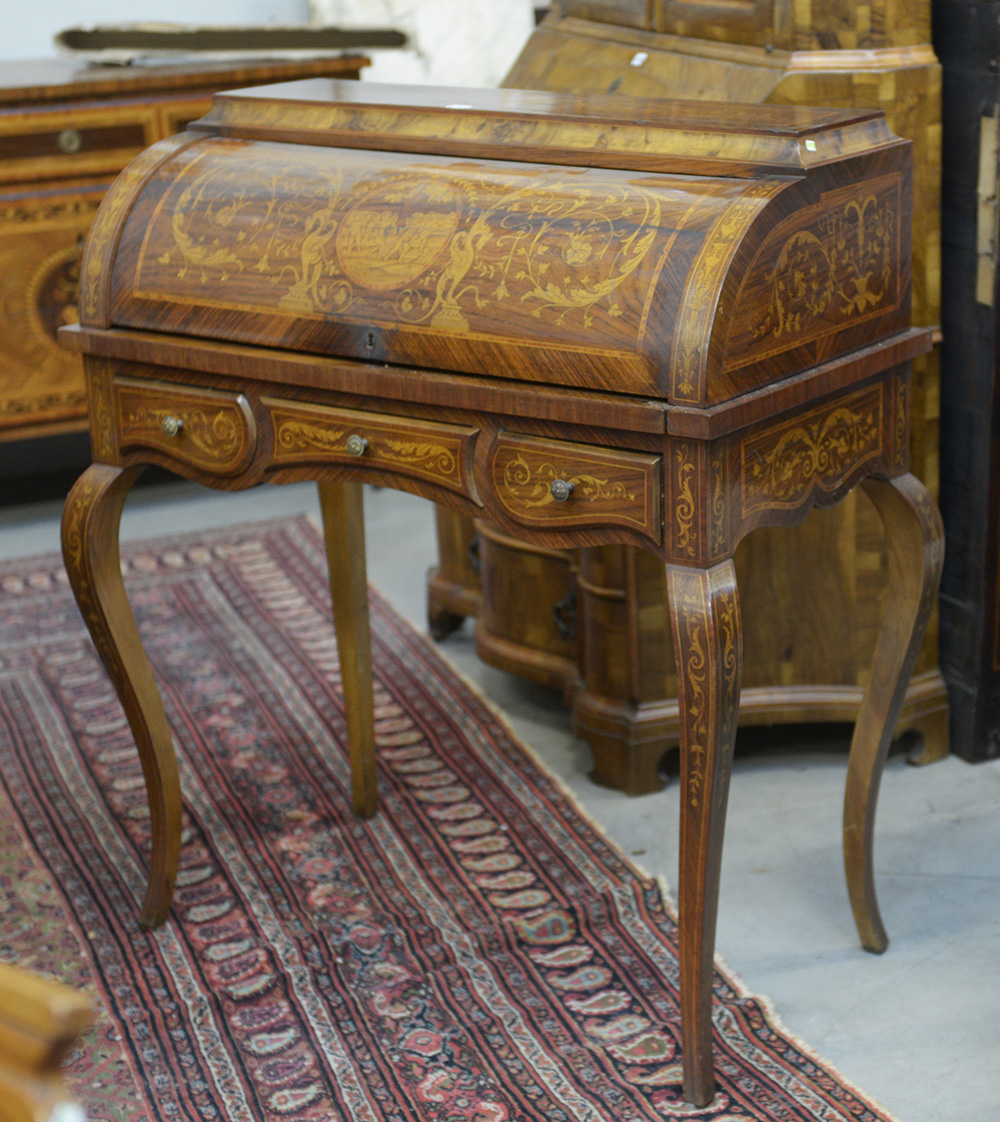 Scrittoietto a rullo interamente intarsiato a volute fogliate (cm 91x110x50)
