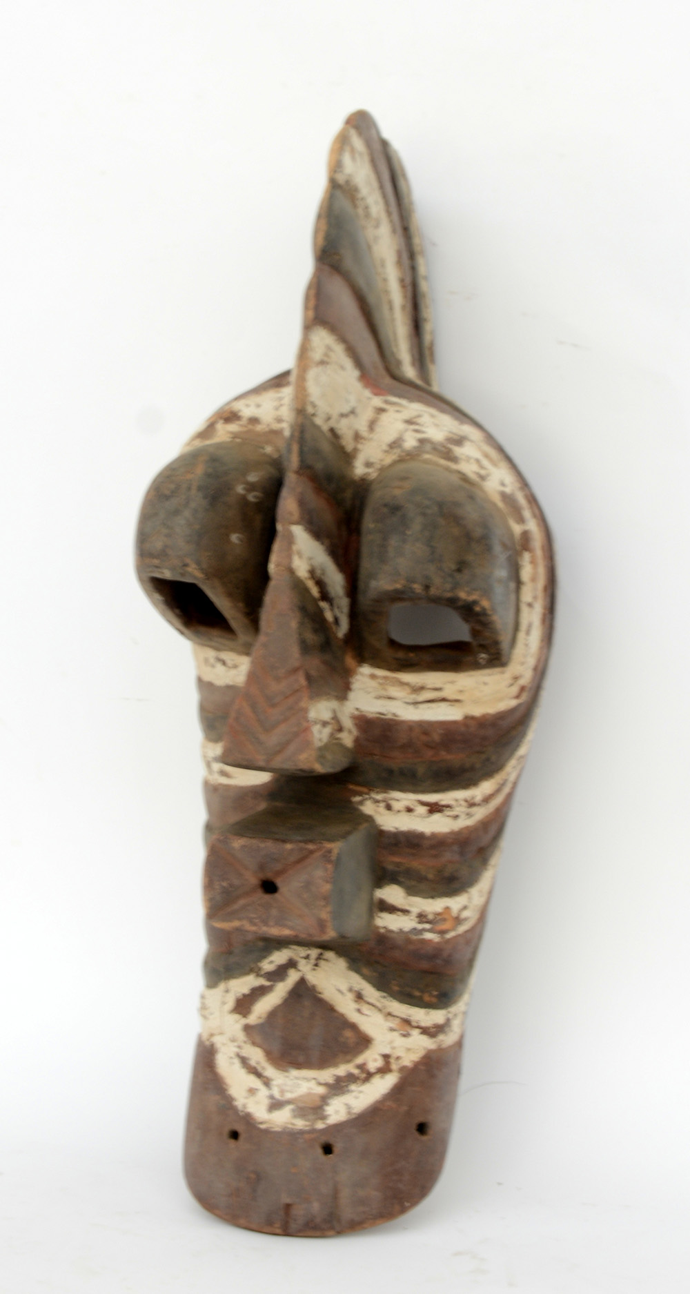 Arte africana, maschera in legno intagliato e pigmenti (h cm 72) (difetti)