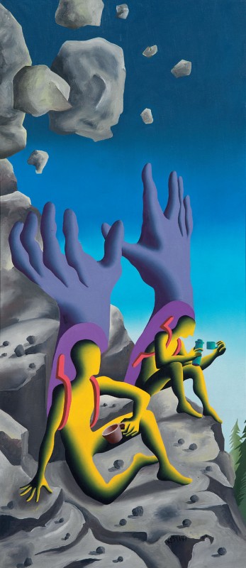 Mark Kostabi Los Angeles 1960 Boulder holder, 1990 Olio su tela, cm. 149x65,5...