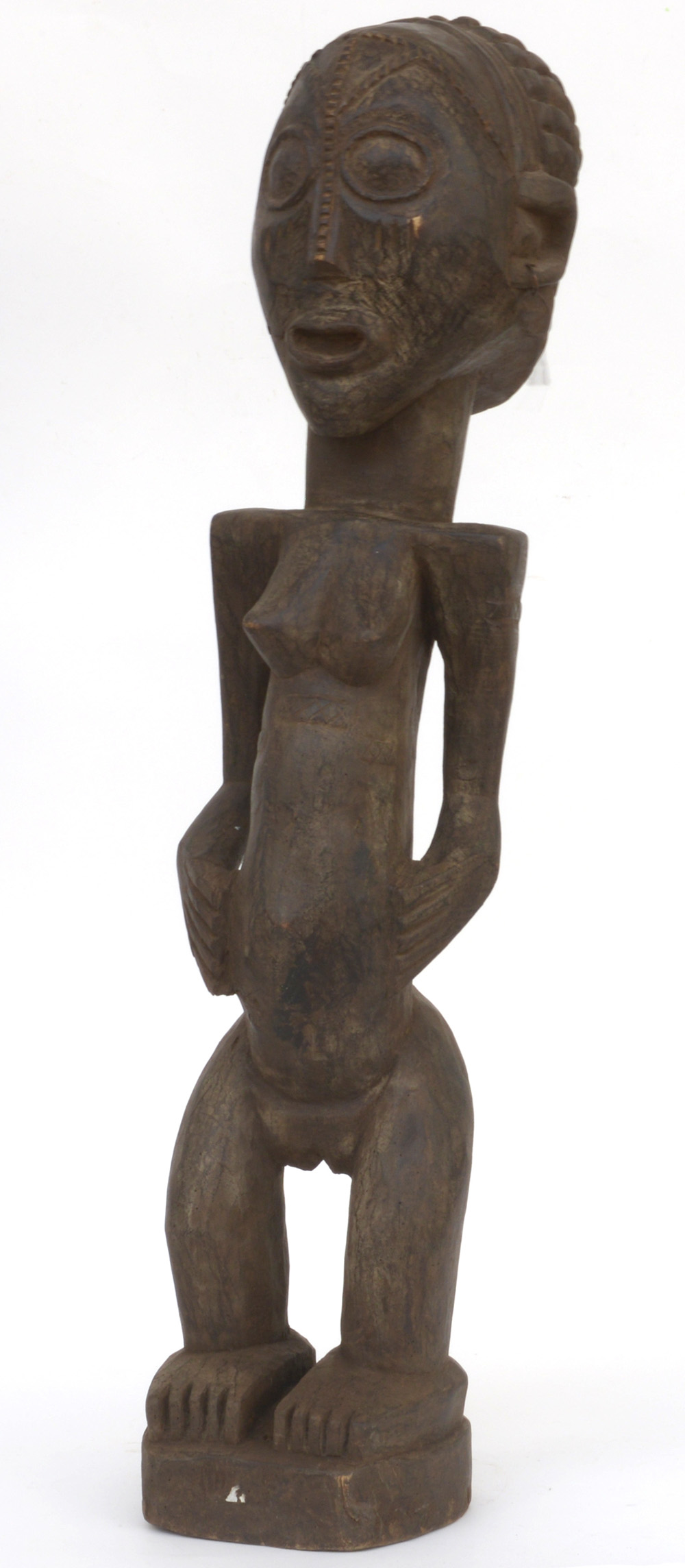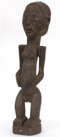 Arte africana, scultura femminile in legno (h cm 90) (difetti)