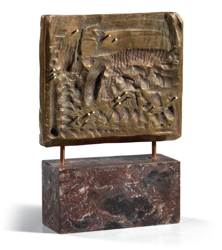 Piero Dorazio Roma 1927 - Todi (Pg) 2005 Double face, 1954 Scultura in bronzo su base in marmo, cm. 28 h. (con base) Foto autenticata dall'artista con timbro Studio Piero Dorazio.