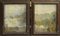 Coppia di diorami della fine del secolo XIX decorato a paesaggi, in cornici intagliate e vetri soffiati dell'epoca (cm 73x57)(difetti)