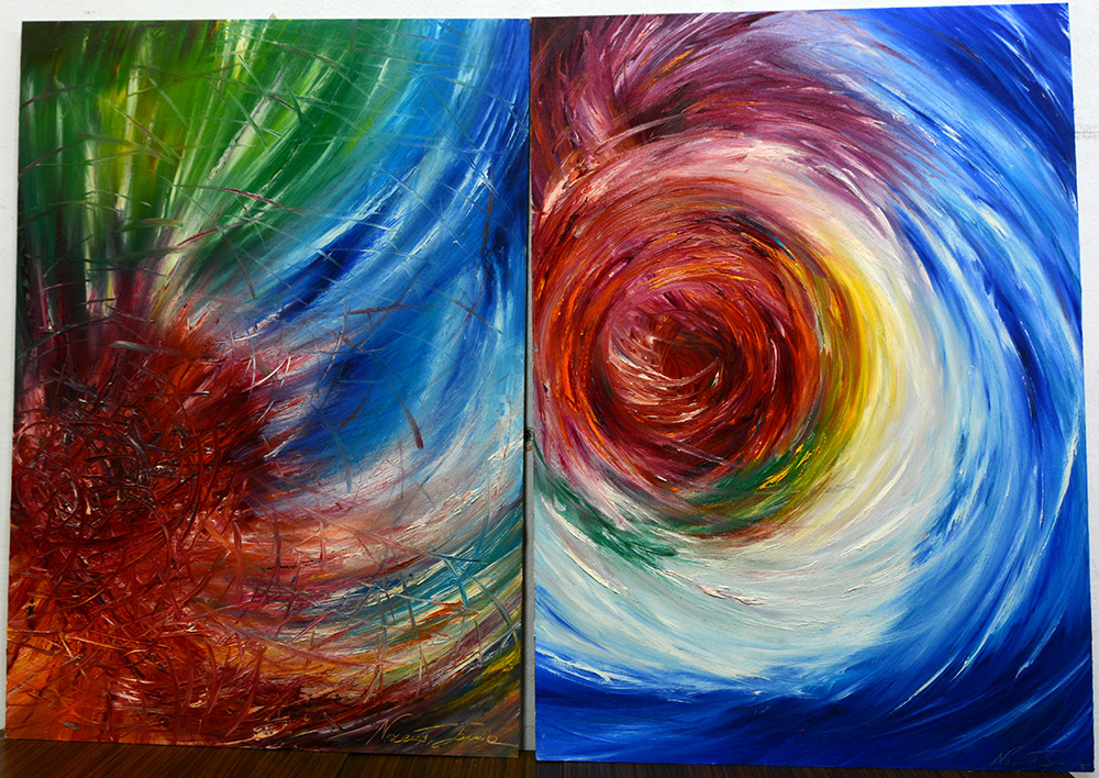 Sonia Nocent "Sognare di poter vivere - Colori di una terra" coppia di olii...