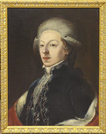 Scuola del secolo XVIII "Ritratto di gentiluomo" olio su tela (cm 58x44) in...